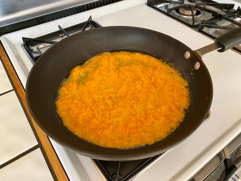 - Sauté the mirepoix on low to medium heat to sweat it out ~10 min