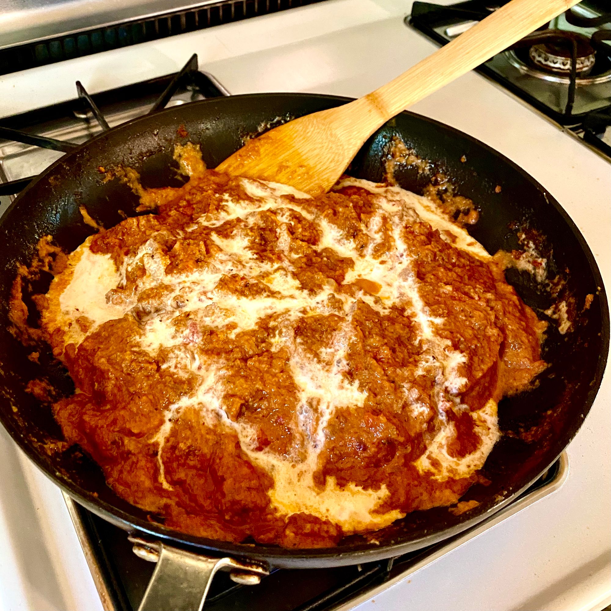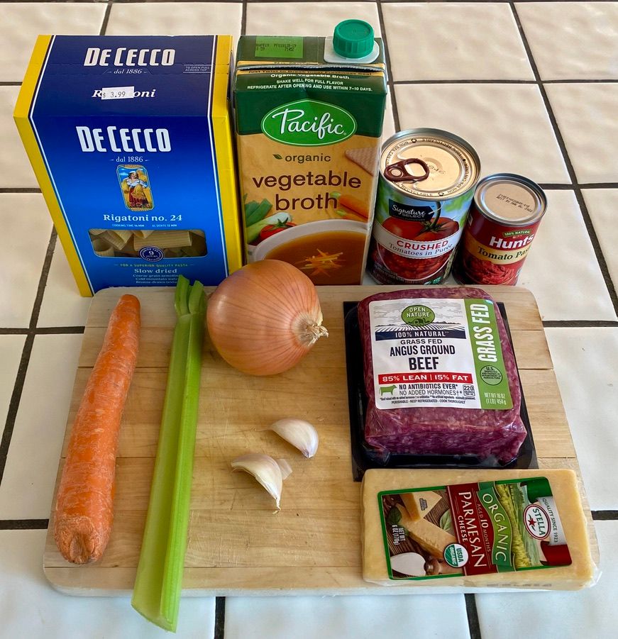 I like my bolognese sauce homogenous - so the mirepoix (celery + onion + carrot) goes in the food processor in chunks and comes out dripping. I like it rich and creamy, so I substitute heavy cream where most recipes call for milk. Honestly, I don't like to measure out ingredients so the wine, cream, broth, and tomato paste are really just estimations. You can never trust these online recipes anyways.