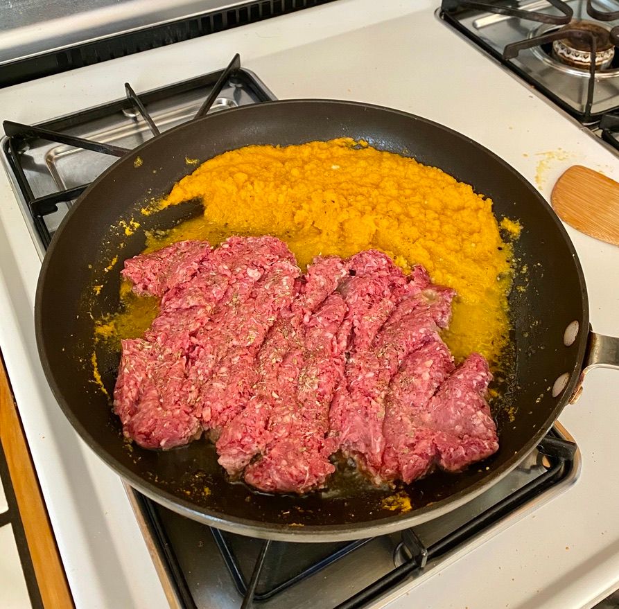 - Brown the beef. In the same pan! 2EZ. You can season the beef too. Like a boss.