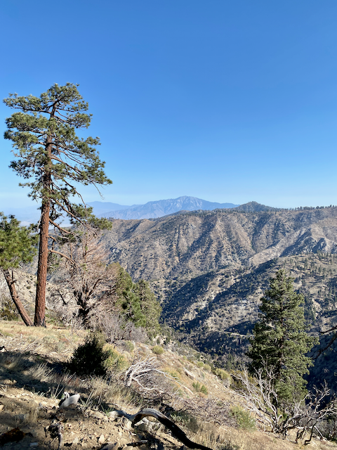 The trail leaves the persistent creek as it enters San Gorgonio Wilderness but still crosses at reliable intervals further up, so water planning isn’t too difficult. In fact, I don’t believe I carried more than a liter at any time through this entire section. You’ll pass through a recent burn zone before the conifers really get dense enough to offer shade, which make for some nice campgrounds popular with nearby sporting Los Angelinos.