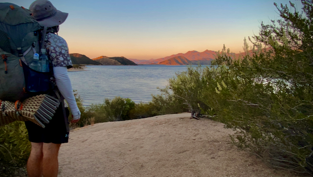 Coming over another canyon crest, you’ll notice white rocks in the wash below, speckled with greenery throughout. Just over 10 miles of hiking from Interstate 10, the trail drops a few hundred feet where you are treated to your first swimming hole of the trail. I made no delay dropping my pack and pulling off clothes for a much needed soak.