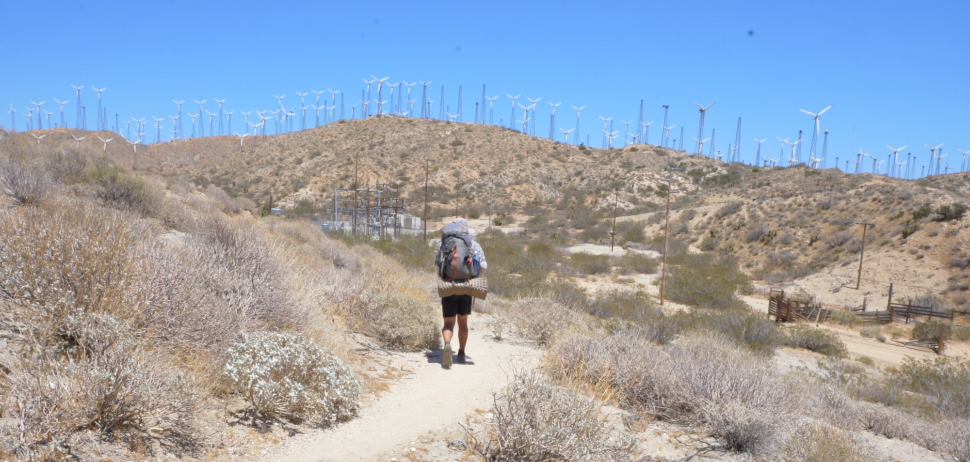 These trips taught me just how mountainous Southern California is. Getting on the PCT provided me with a wonderful reminder. Every time the trail descends down one mountain to a low point and back up more on the other side you will find evidence of travel and freight. These passes provide not only convenient places for cars and trains to move, but also wind. The strong gusts coming from the Pacific Ocean seem to blow relentlessly here. If blistering heat isn’t on the forefront of your mind at this point in the hike, it’s probably the wind then.