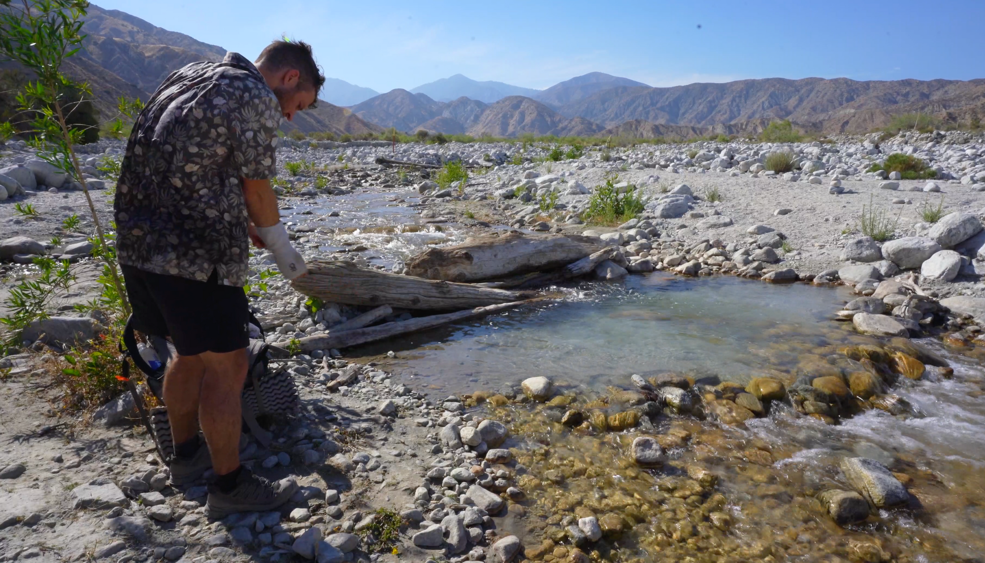 After a leisurely breakfast of vegan pancakes, fruit salad, and scrambled eggs, the task master dropped us back off at the trailhead on Highway 18. Deep Creek is the next major destination, another popular weekend getaway for Los Angelinos. The trail runs right past the hot springs, which are built into the side of the river bank, affording you the most excellent choice between hot and cold. These were some of the best hot springs I’ve had the chance to visit. It’s a popular spot, but didn’t feel too crowded during my visit as there is a lot of space to spread out. Definitely worth a stop here.