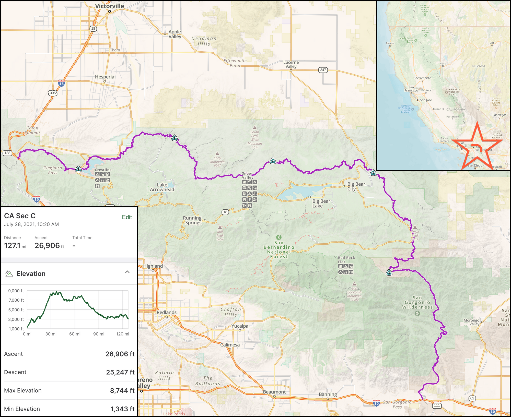 PCT CA Section C - Interstate 10 to Interstate 15 - 132.4 Miles
