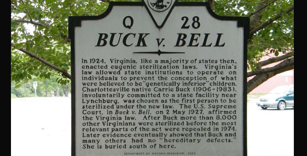 The story breaks to Darwin's cousin, Francis Galton, considered to be the father of eugenics. He's the one who asks the question, "If we can breed better cattle and better wheat, why not better humans?" Upon posing this question, the eugenics movement catches wind in America with Better Babies contests and the first involuntarily sterilization of Carrie Buck who had been diagnosed as feebleminded and an imbecile. In 1927, the US Supreme Court ruled 8 to 1 that states can forcibly sterilize those who are "unfit to procreate". Buck v. Bell triggered the event which eventually led to over 30,000 forced sterilizations in the United States. Meanwhile, in a jail cell for treason on the other side of the world, Adolf Hitler intently reads publications by the American Eugenics Society as he writes Mein Kampf. We all know where that ends.